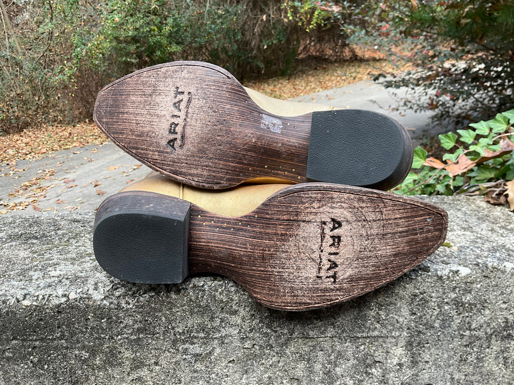 Size 10 women’s Ariat boots. Excellent pre worn condition. All gold.