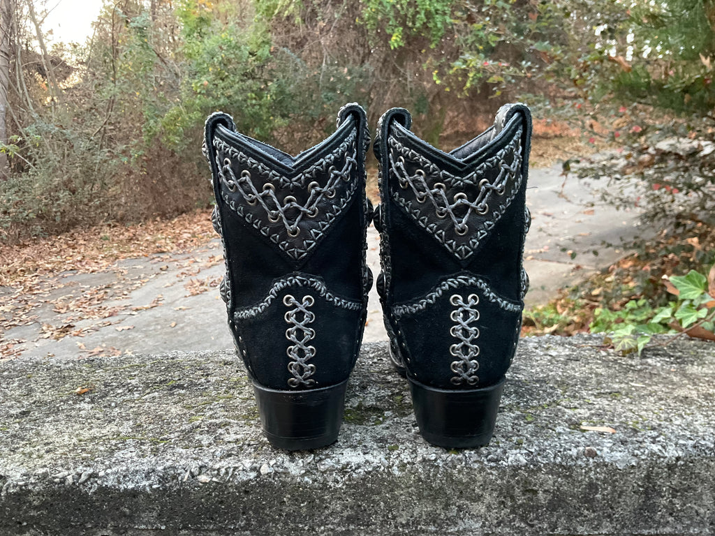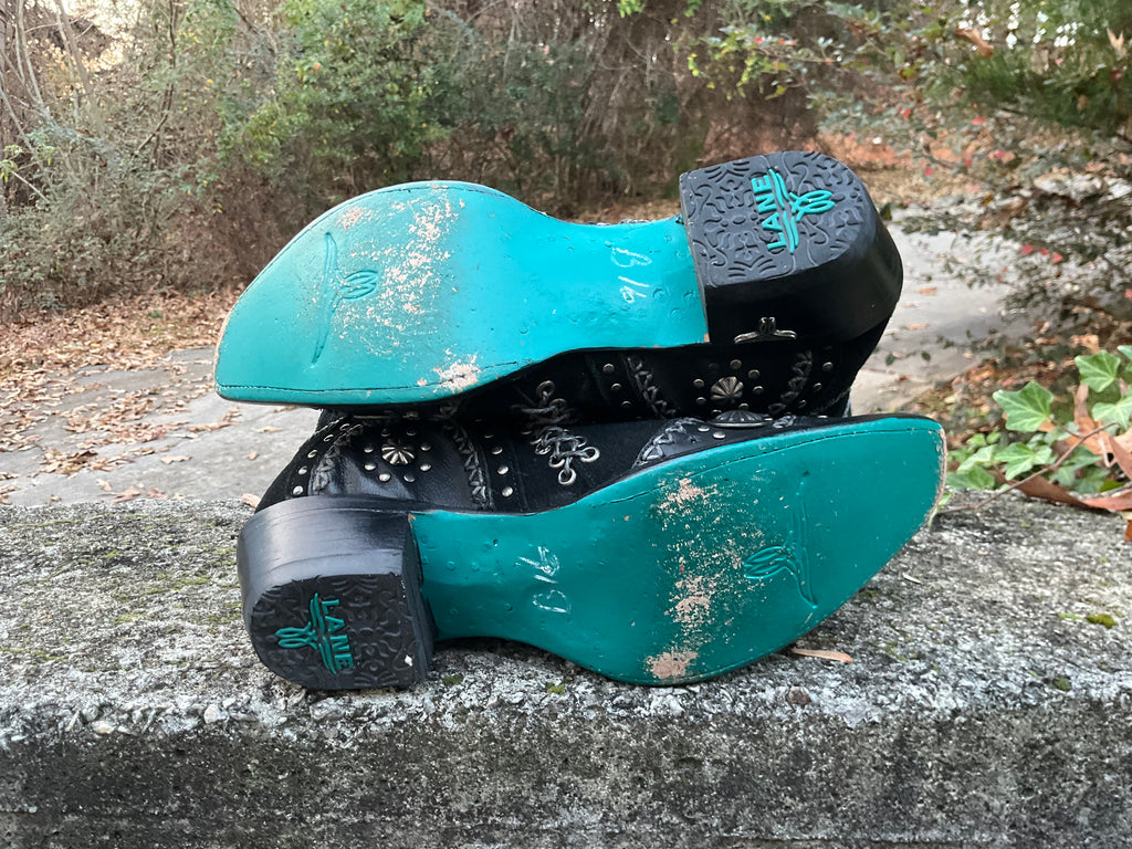 Size 7.5 women’s Lane boots. Excellent vintage condition. Short black shaft with concho’s on the side.