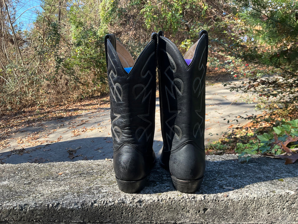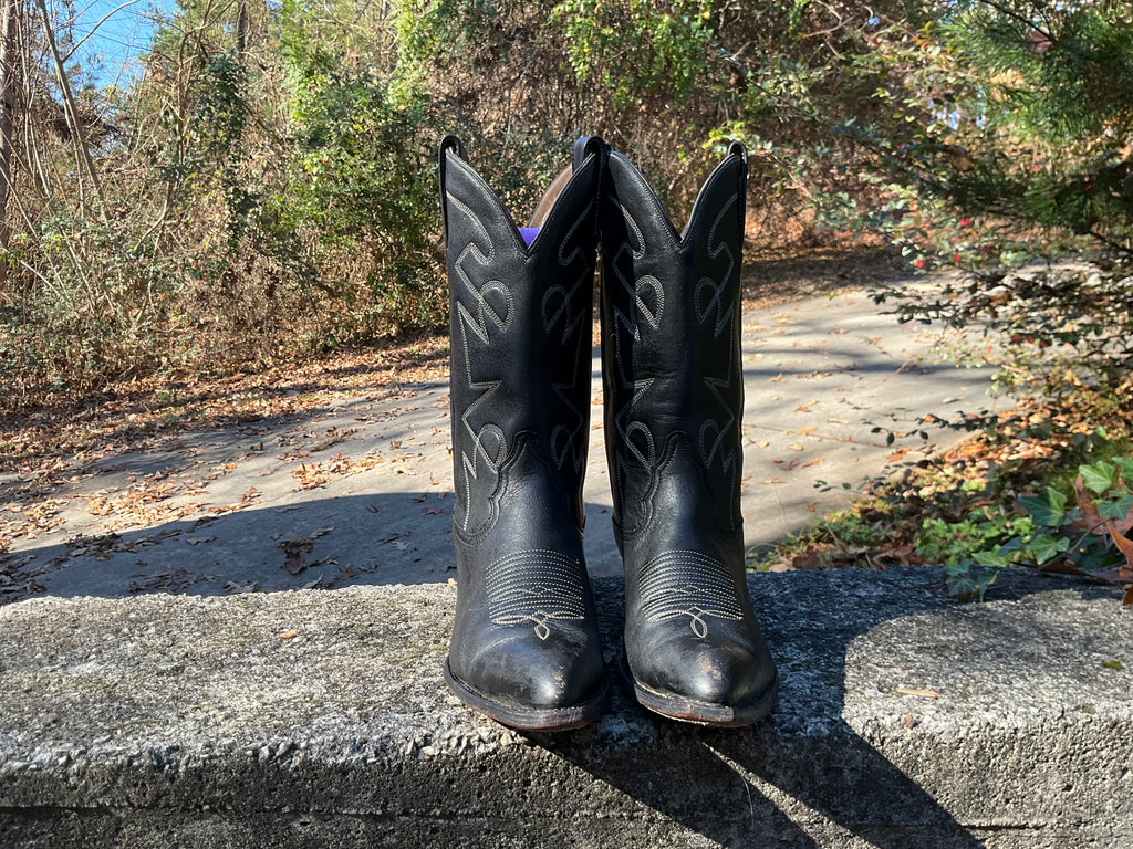 Size 7.5 women’s Montana boots. Very good vintage condition. All black. Lemonwood pegs.