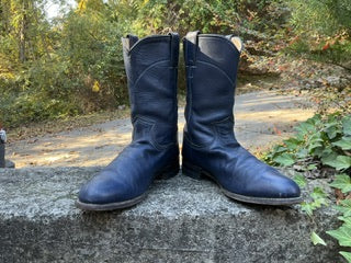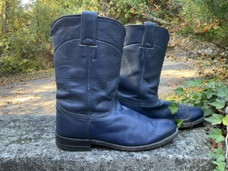 Size 8.5 women’s Justin boots. Very good vintage condition. Navy blue ropers.