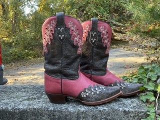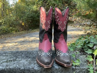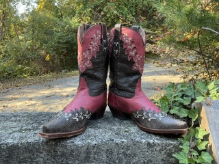 Size 8.5 women’s Tony Lama boots. Excellent vintage condition. Medium red with dark brown trim and studs.
