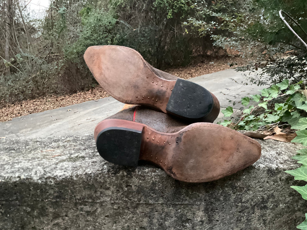 Size 7.5 women’s Justin boots. Very good vintage condition. Brown foot with orange stitched shaft.