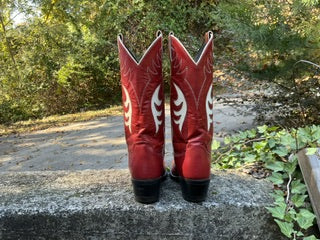 Size 7 women’s Justin boots. Excellent vintage condition. Red with white inlay on shaft.