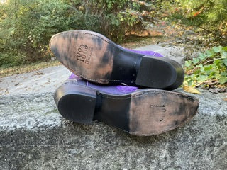 Size 7 women’s Lucchese boots. Rare pattern. All purple with dark brown tooled toe.