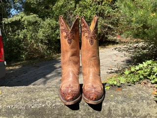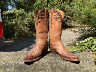 Size 7 women’s Lucchese handmade classics. Excellent vintage condition. Light brown with dark brown embossed trim.