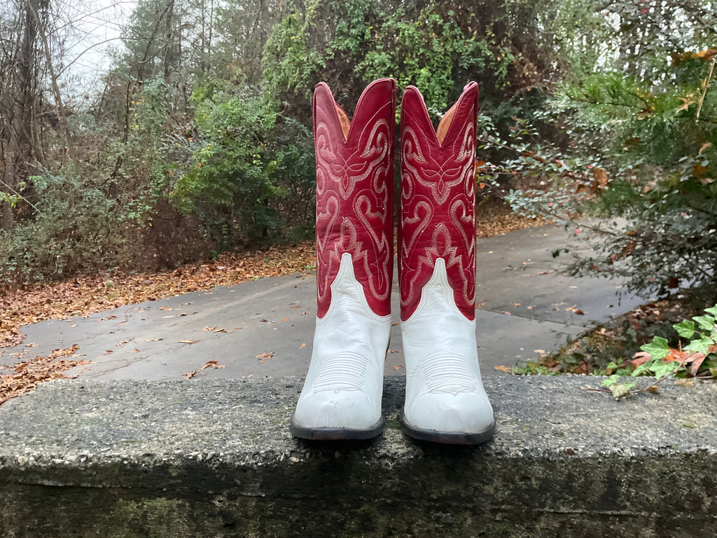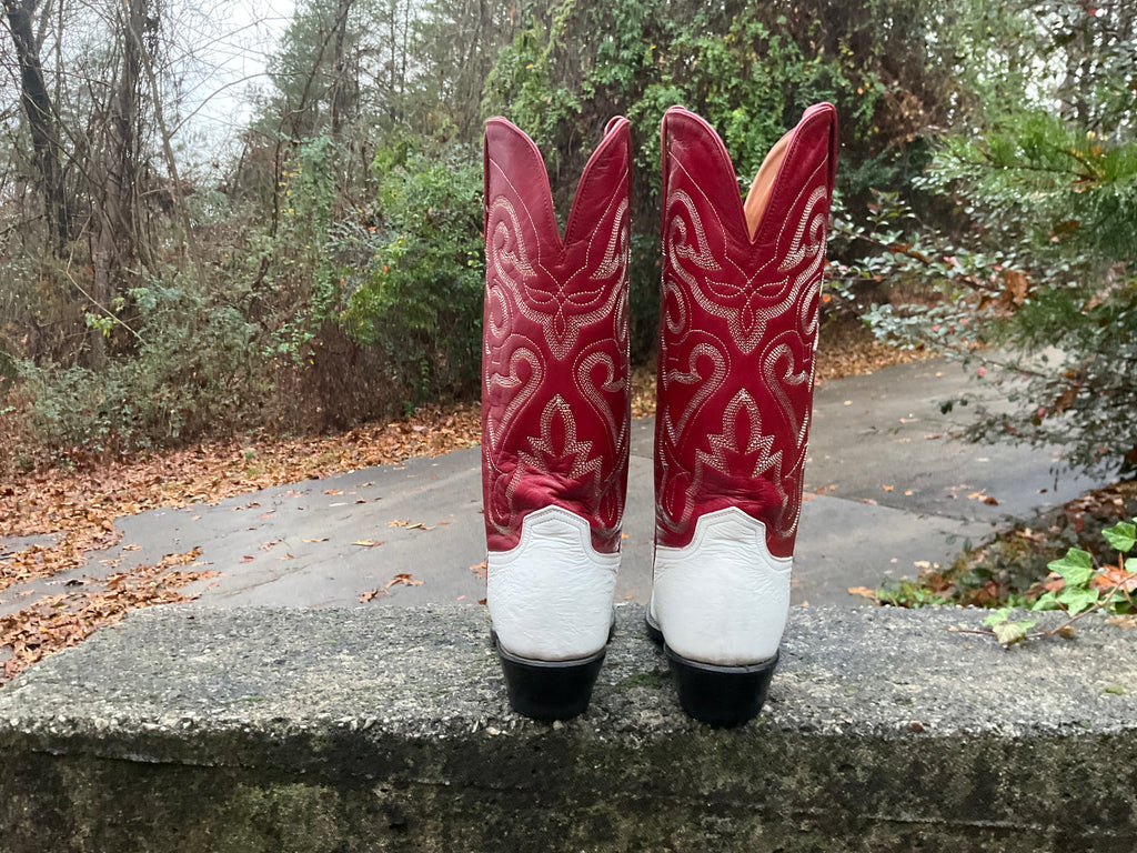 Size 9.5 women’s Ferrini boots. Excellent vintage condition. White foot with red stitched shaft.