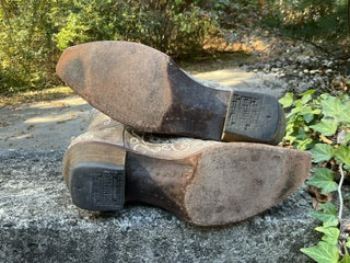 Size 9 women’s Corral boots. Very good vintage condition. Taupe with ivory embroidery.