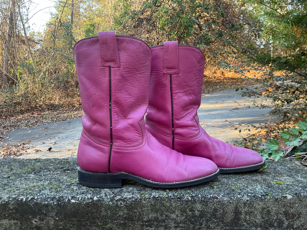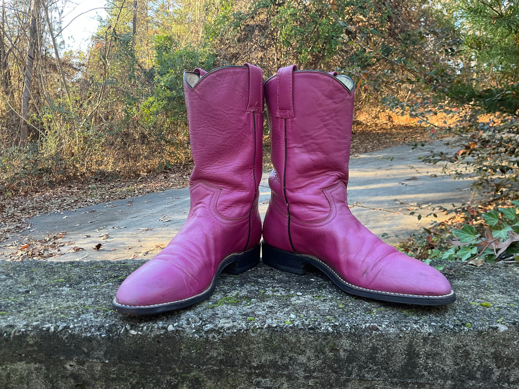 Size 9 women’s unbranded boots. Excellent vintage condition. Dark pink or magenta color. Roper style.